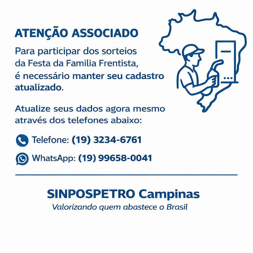 Atenção trabalhadores e trabalhadoras em postos de Combustíveis da região de Campinas e que são representados pelo Sinpospetro-Campinas:
