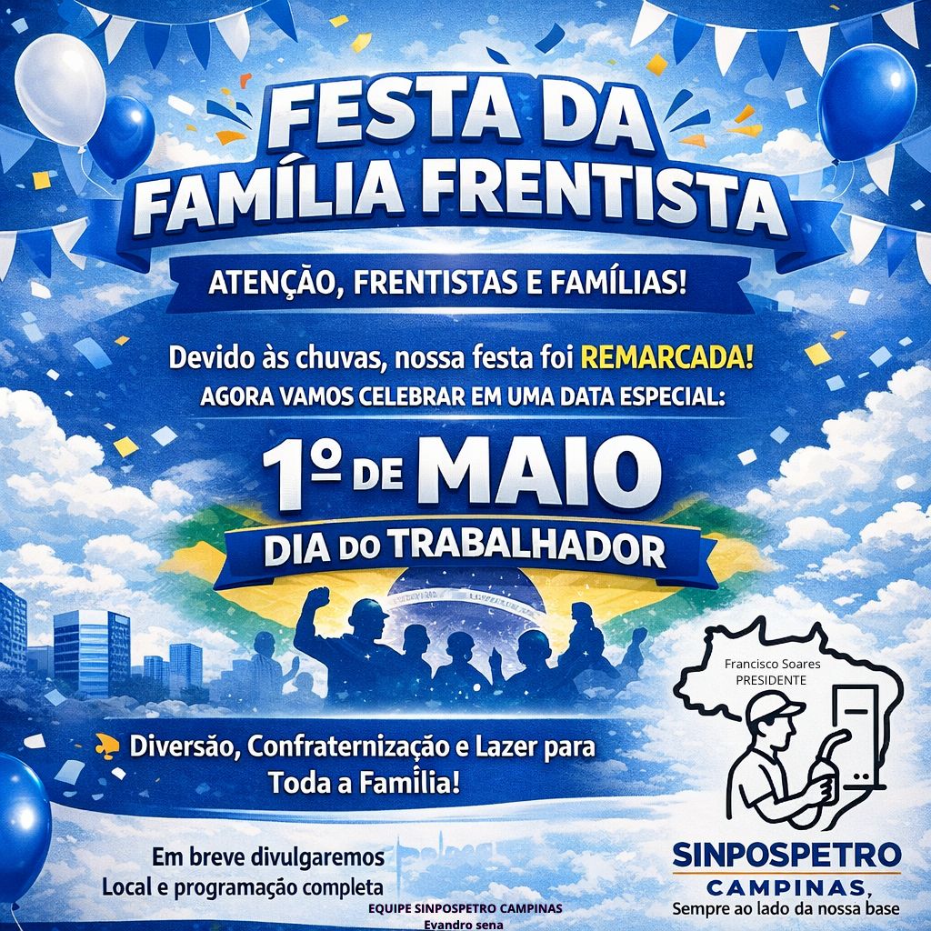 A Festa da Família Frentistas, foi reprogramada para acontecer no dia 1º de maio, em local ainda a ser anunciado.
