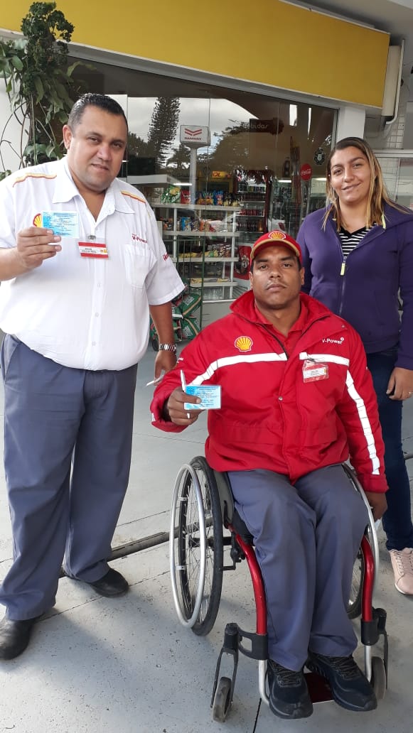 A atividade de visitar bases é uma das mais importantes dentro de um sindicato. É quando é possível fiscalizar, conscientizar e sindicalizar trabalhadores. Nessa tarefa, é comum que a equipe do Sinpospetro-Campinas se depare com exemplos de superação, frente às adversidades da vida. É o caso do frentista Malcom Cesar Ramos, 33, que convive há doze anos com a falta de mobilidade nas pernas. Ex-bancário, ele abraçou há um ano a profissão de frentista, após perder a aposentadoria a que tinha direito, e depois de meses à procura de emprego. Desde então, precisou superar a desconfiança inicial dos colegas de trabalho acerca da dimensão das suas limitações, e hoje é conhecido pela eficiência e autonomia com que desempenha suas atividades. “A conduta dele é exemplar”, elogia Paulo H. de Oliveira, líder de pista da empresa. No Posto “TRE Fratelli” na cidade de Indaiatuba (a 30 km de Campinas), onde trabalha no turno das 14h às 22h, Malcon, da cadeira de rodas, abastece, calibra pneus e, dependendo do modelo do carro, até levanta, sem auxílio, o capô quando é preciso verificar o nível do reservatório de água e óleo do motor. Muito dessa disposição Malcom associa à prática de esportes. Fã de atletismo, ele compete na modalidade, representando a Secretaria de Esportes da cidade. E assim como a maioria dos brasileiros, luta para conciliar a rotina puxada com a vida familiar, ao lado da esposa e dos dois filhos dela: “Se reinventar continuamente e superar obstáculos, para mim, é uma obrigação” ensina Malcom.