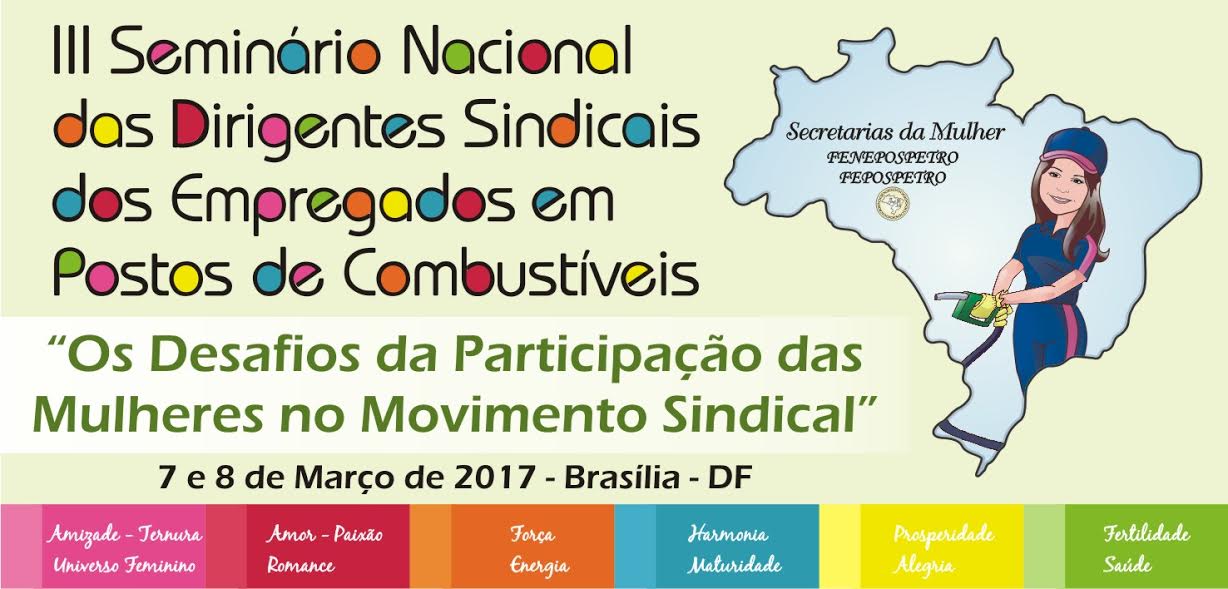 Fortalecer a luta das mulheres por direitos e contra a desigualdade de gênero na sociedade é o principal objetivo do “III Seminário das Dirigentes Sindicais dos Empregados em Postos de Combustíveis”, que as Secretarias da Mulher das Federações Nacional e Estadual dos frentistas (Fenepospetro e Fepospetro), promovem a partir das 19h desta terça-feira, 7 de março, até o dia 8, em Brasília/DF, na sede da Confederação Nacional dos Trabalhadores no Comércio – CNTC. Com o tema: “Desafios da Participação das Mulheres no Movimento Sindical”, o evento, parte daprogramaçãoda categoria ao Dia Internacional da Mulher, celebrado em 8 de março, em sua abertura trará palestra com a exmª sra. dra. Maria Berenice Dias. A jurista, primeira mulher a ingressar na magistratura do Rio Grande do Sul, e a primeira Desembargadora nesse Estado, autora de livros, entre eles o “Lei Maria da Penha”, falará sobre o tema: “A evolução do papel da mulher na sociedade” para um público de setenta pessoas, formado majoritariamente por mulheres dirigentes sindicais da categoria de todo o país. Estarão presentes no evento, entre demais nomes da liderança dos frentistas, o presidente da Fenepospetro e do Sinpospetro do Rio de Janeiro, Eusébio Pinto Neto, e o presidente da Fepospetro e Secretário de Negociações Coletivas da Fenepospetro, Luiz Arraes. Em meio aos convidados, representantes do movimento sindical, da política e de outros setores de defesa dos direitos sociais.