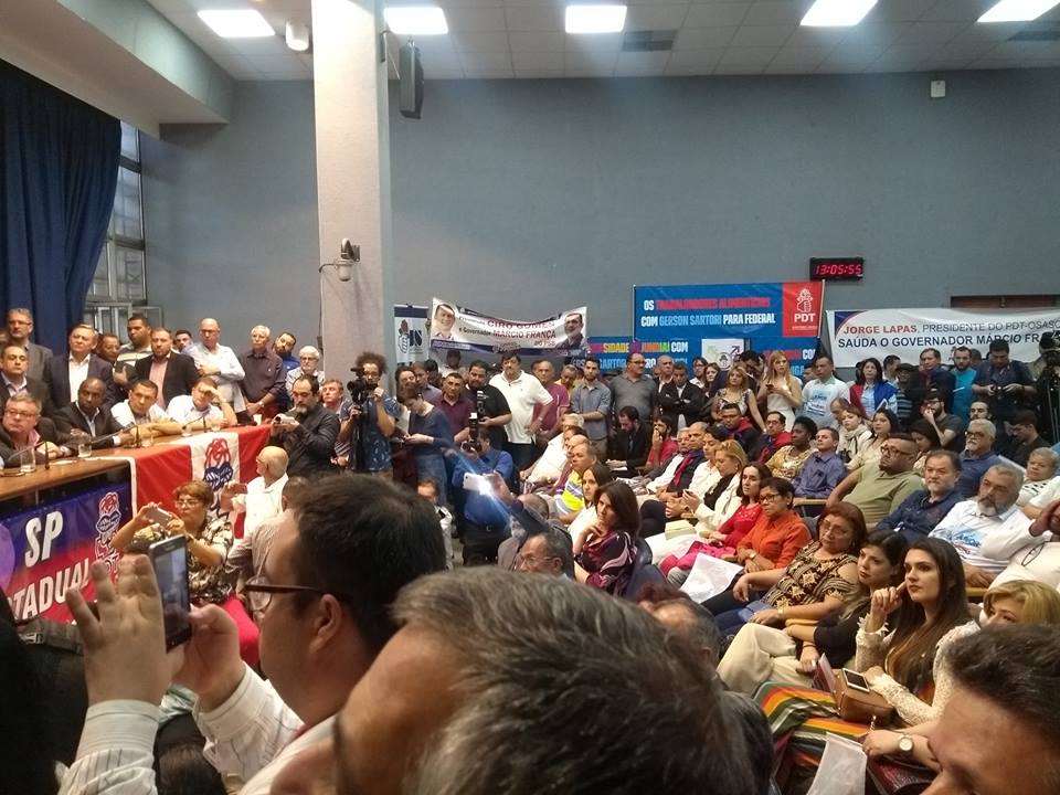 Realizado das 12h30 as 15h00 no auditório Franco Montoro, o ato teve as presenças de Ciro Gomes e do presidente nacional do PDT, Carlos Lupi, e definiu, além dos 40 nomes para a disputa ao cargo de deputado federal e outros 80 para deputado estadual, o apoio do PDT à reeleição de Márcio França (PSB), governador de São Paulo.